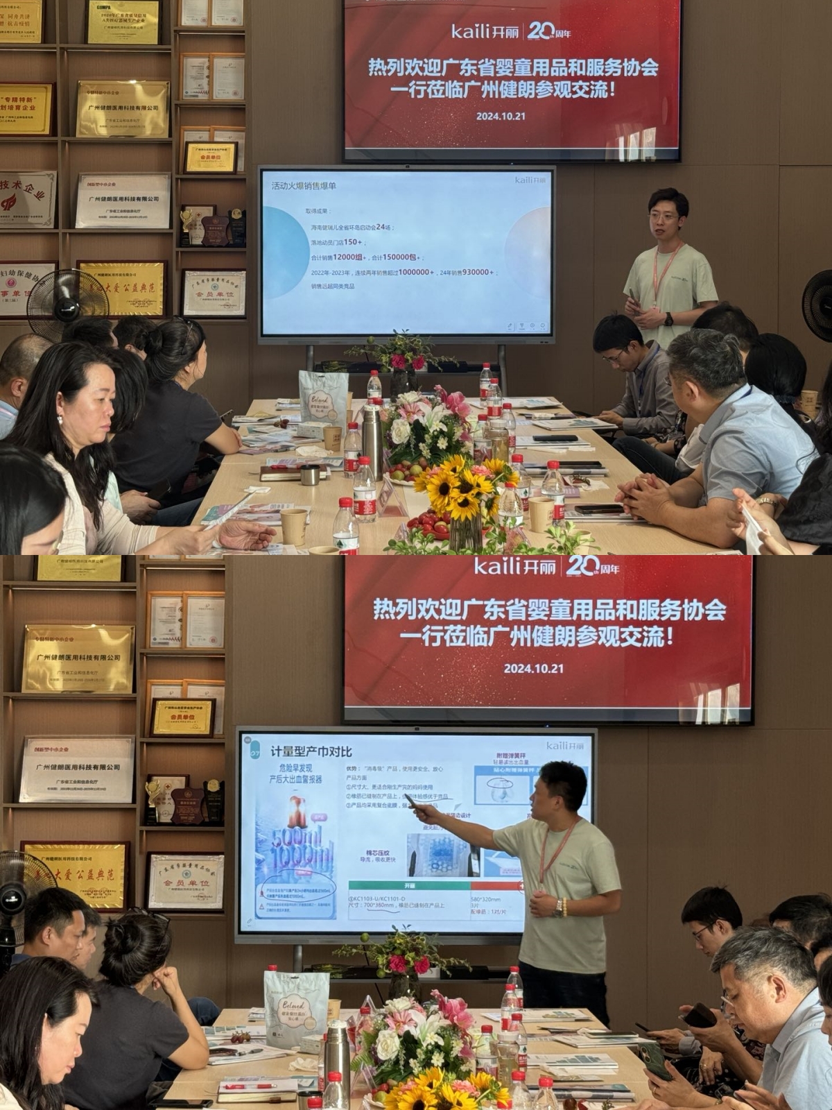 10月21日下午,廣東嬰童協會帶領零售分會會長佛山親子坊黎裕章董事長、母嬰護理分會會長深圳禧月薈謝熹煌董事長、零售分會秘書長廣州愛伢吖汪艷總經理及一眾零售門店、月子會所企業代表、醫護專家、協會秘書處一行蒞臨位于從化明珠工業區的開麗生產基地——廣州健朗醫用科技公司進行座談。廣州健朗醫用科技有限公司(以下簡稱“廣州健朗”)董事長鄭建輝及公司代表一行表示熱烈歡迎,并基于廣州健朗的未來發展和合作方向進行了深度溝通交流。